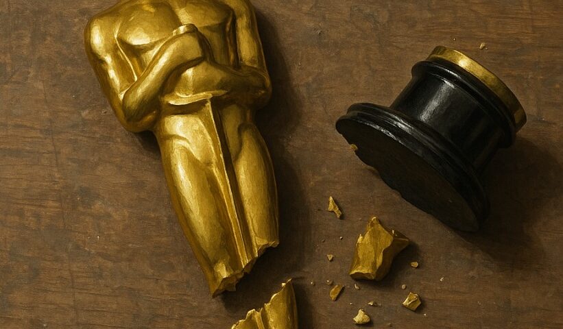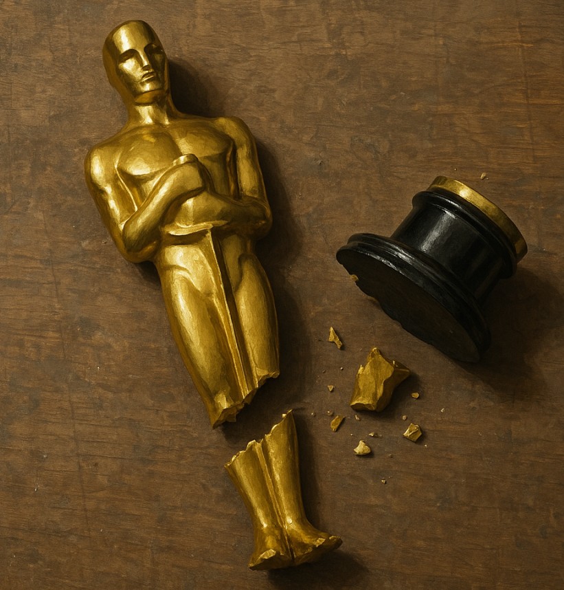 Figure shows the first try of ChatGPT when asked “Can you draw a picture of a broken Oscar award?”